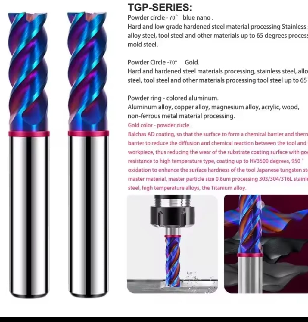 שאזאם TGP-HRC70 4f צבע מעגל שטוח קצה טחנה טונגסטן פלדה ציפוי כחול קרביד ציפוי כרסום מכני cnc