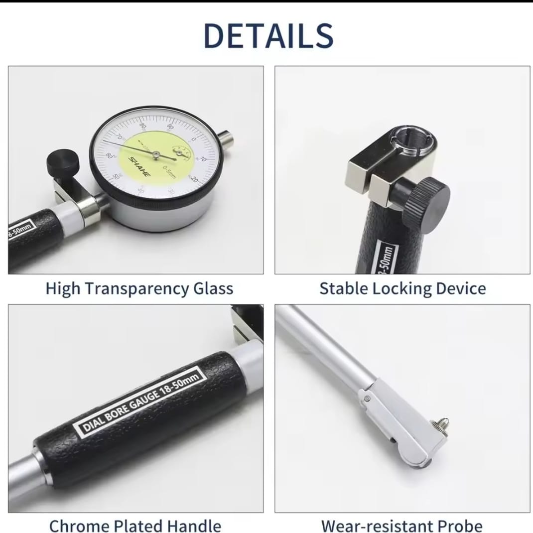 שהחוגה סט כבודה 18-50/50-100/100-160 מ"מ חייג 0.01 מ"מ חיוג נשא מחוון עמוק מנוע חור מדידת חור של חיות