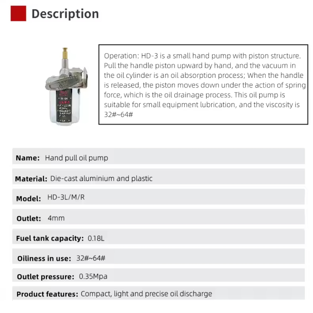/ שמן בוכנה משאבת שימון ידנית/יד המופעלת על מסוכת/סיכה יחידה HD-3 מערכת שימון מרכזית/מכונת CNC