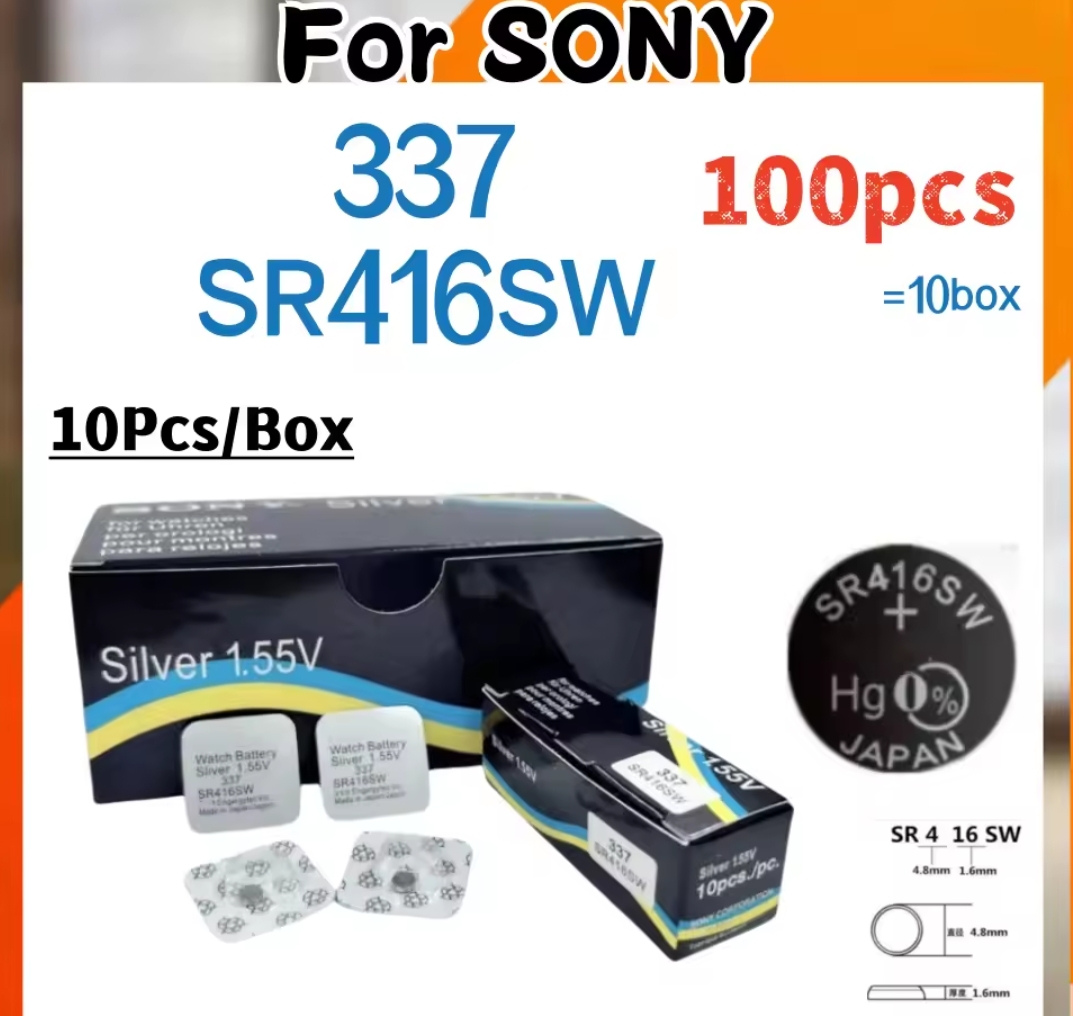 / 100 יחידות עבור SONY 337 SR416SW AG6 LR416 337A סוללות תחמוצת כסף עבור סוללות שעון אוזניות LED