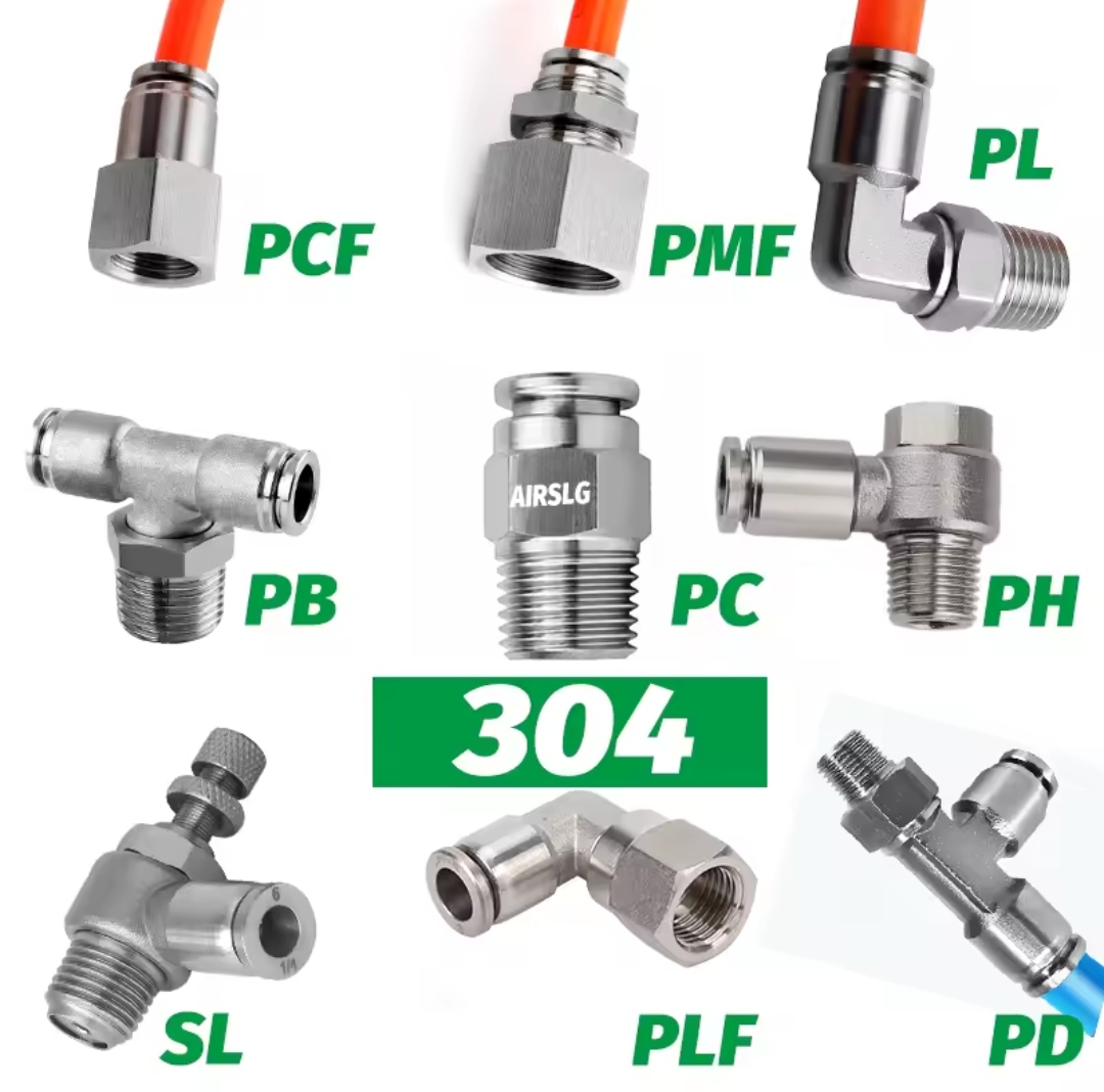 304 צינור צינור פנאומטי נירוסטה אביזרי pc pcf pl plf pb מחבר צינור אוויר צינור מחבר 1/8 1/4 3/8 1/2 מהיר אביזרי צינור שחרור מהיר