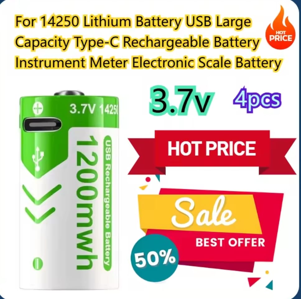 / 4 יחידות לסוללת ליתיום 14250 עם קיבולת גדולה USB סוג-3.7V C סוללה נטענת מד סוללה אלקטרונית