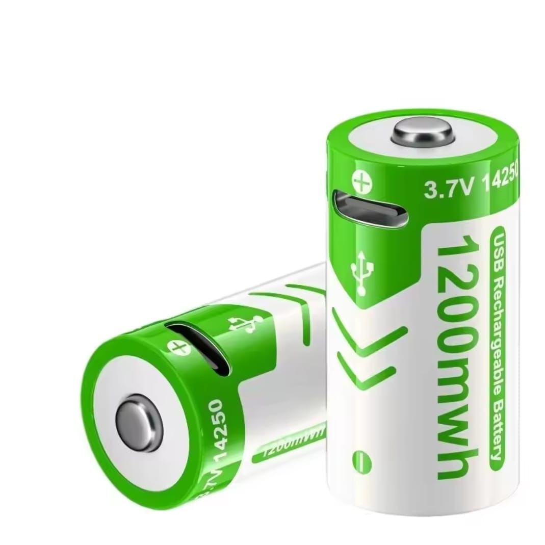 כמות של 4 יחידות לסוללת ליתיום 14250 עם קיבולת גדולה USB סוג-3.7V C סוללה נטענת מד סוללה אלקטרונית