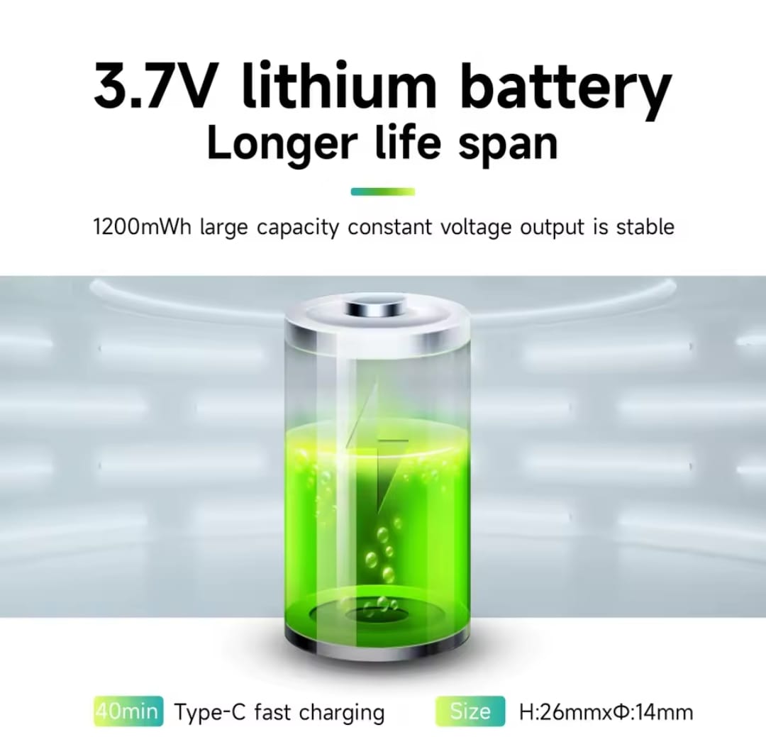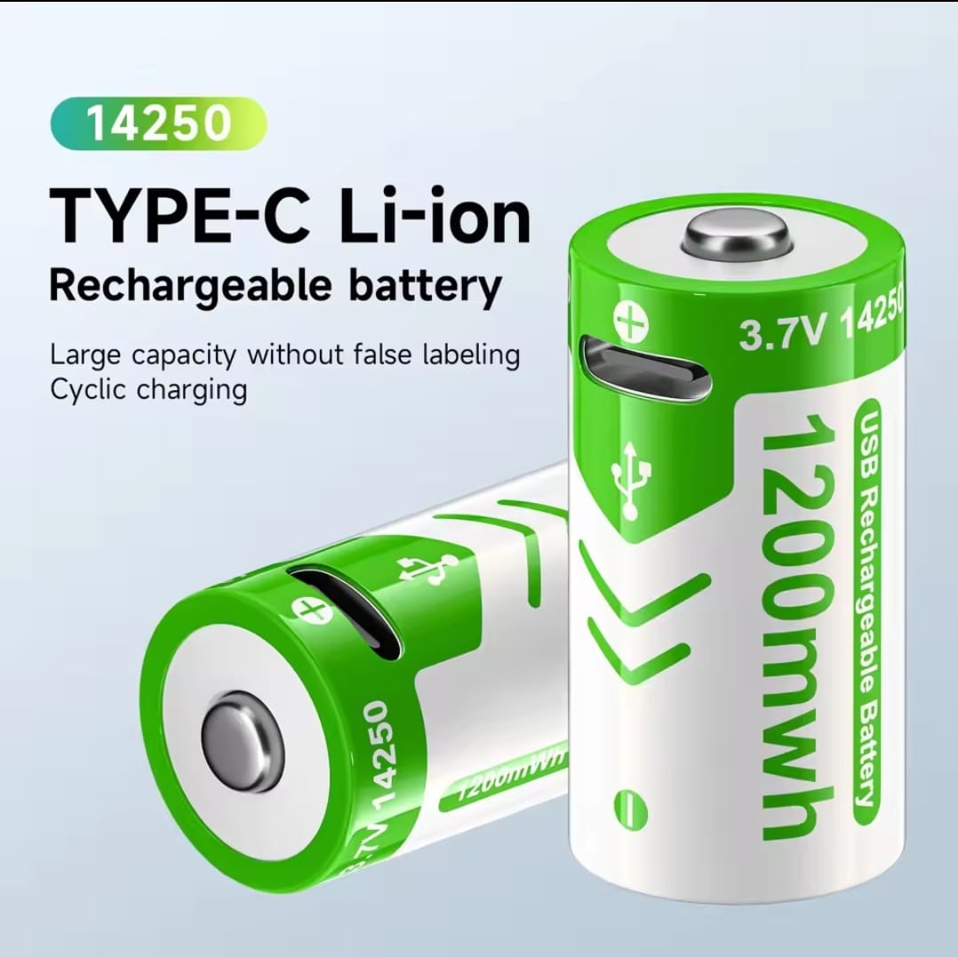 4 יחידות לסוללת ליתיום 14250 עם קיבולת גדולה USB סוג-3.7V C סוללה נטענת מד סוללה אלקטרונית
