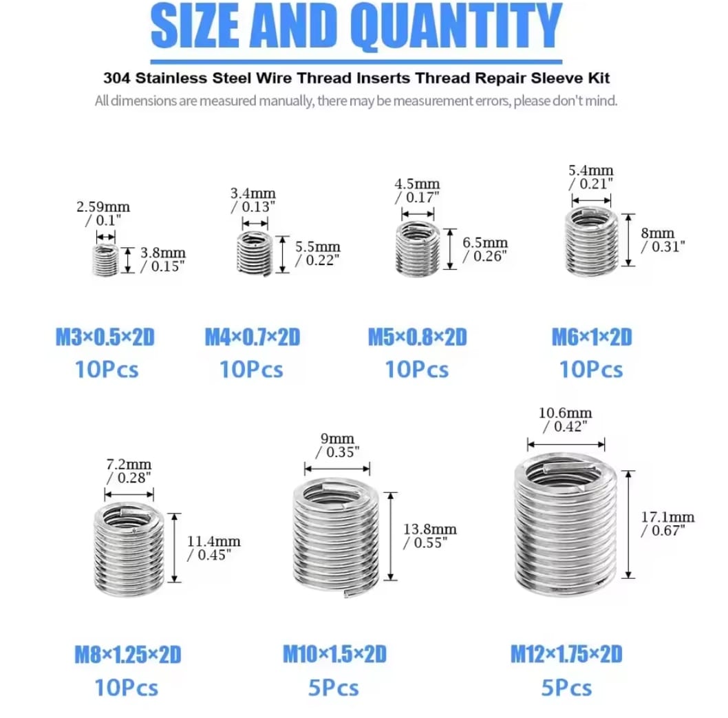 / 60 יחידות מכניסי חוט M3 M4 M5 M6 M8 M10 M12 מכניסי חוט מהירים מפלדת אל-חלד מכניסי מסמר חוט ספירלי ערכת תיקון