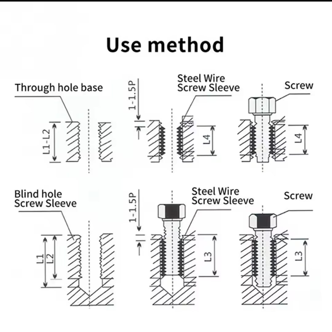 60 יחידות מכניסי חוט M3 M4 M5 M6 M8 M10 M12 מכניסי חוט מהירים מפלדת אל-חלד מכניסי מסמר חוט ספירלי ערכת תיקון