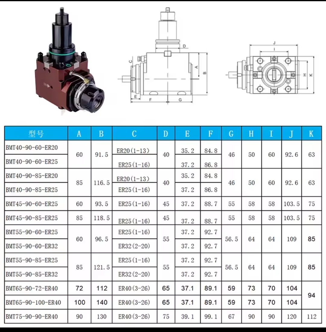 / BMT65 ראש כלי עבודה חי מסוג 90 מעלות רדיאלי CNC למחרטה, כרסום וקידוח, בעל דיוק גבוה