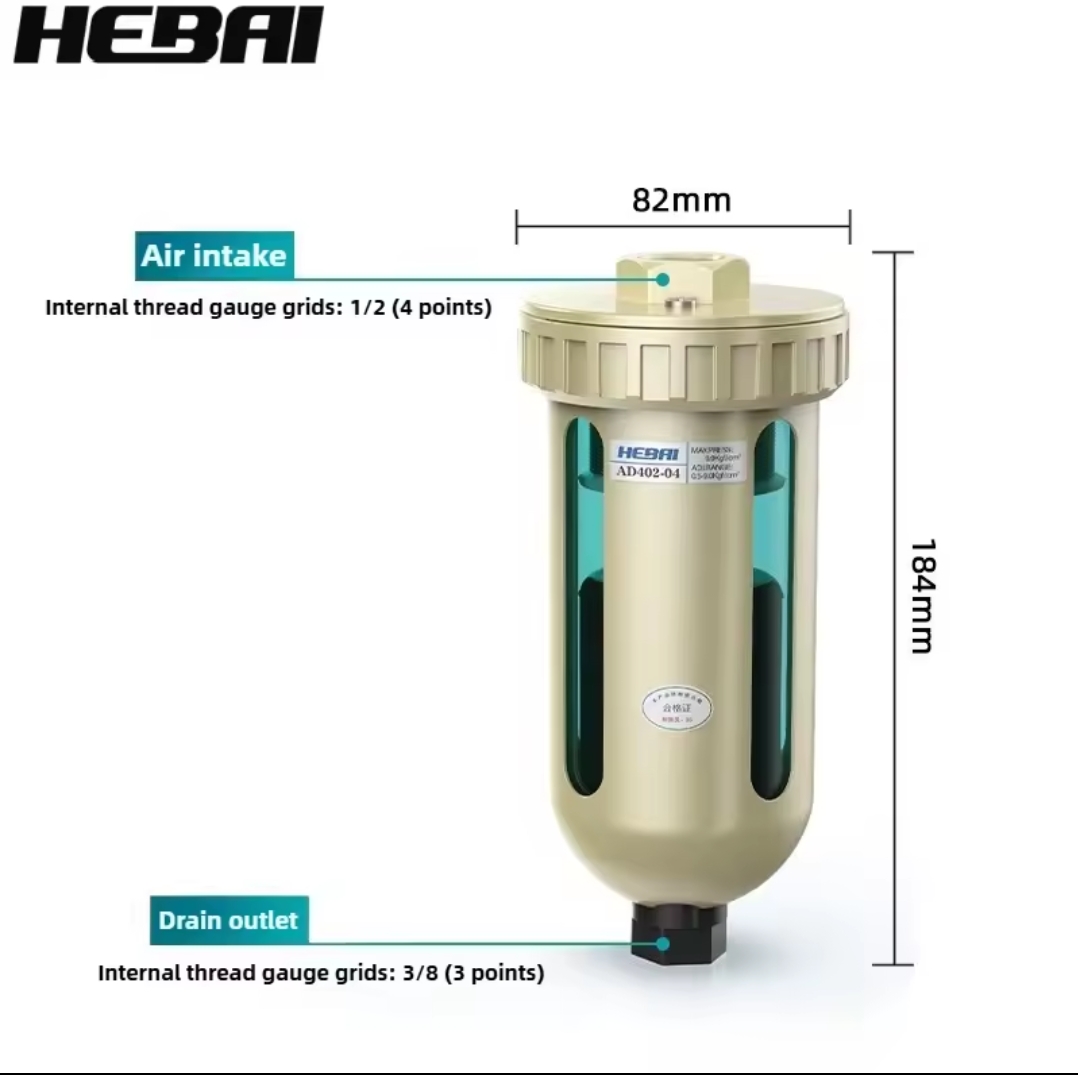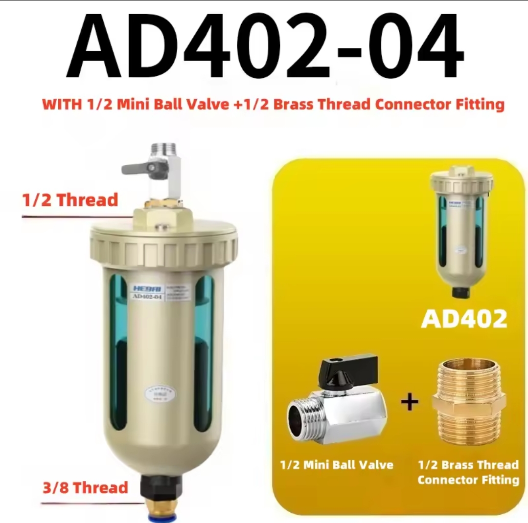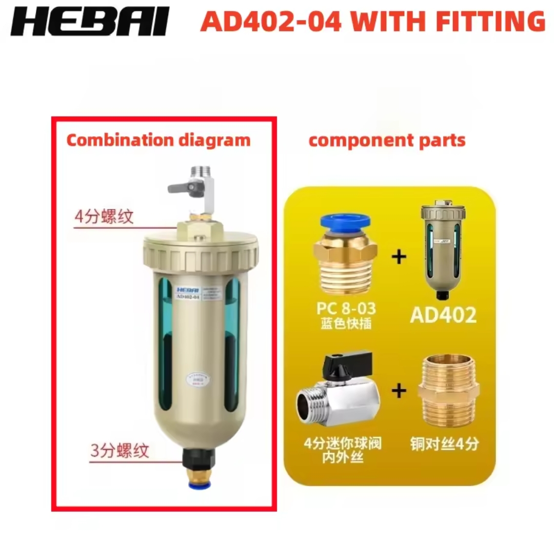 HEBAI AD402-04 ניקוז אוטומטי עם חיבור מעבד מקור אוויר פנאומטי מפרידי שמן מים מסנני דיוק ולב ניקוז