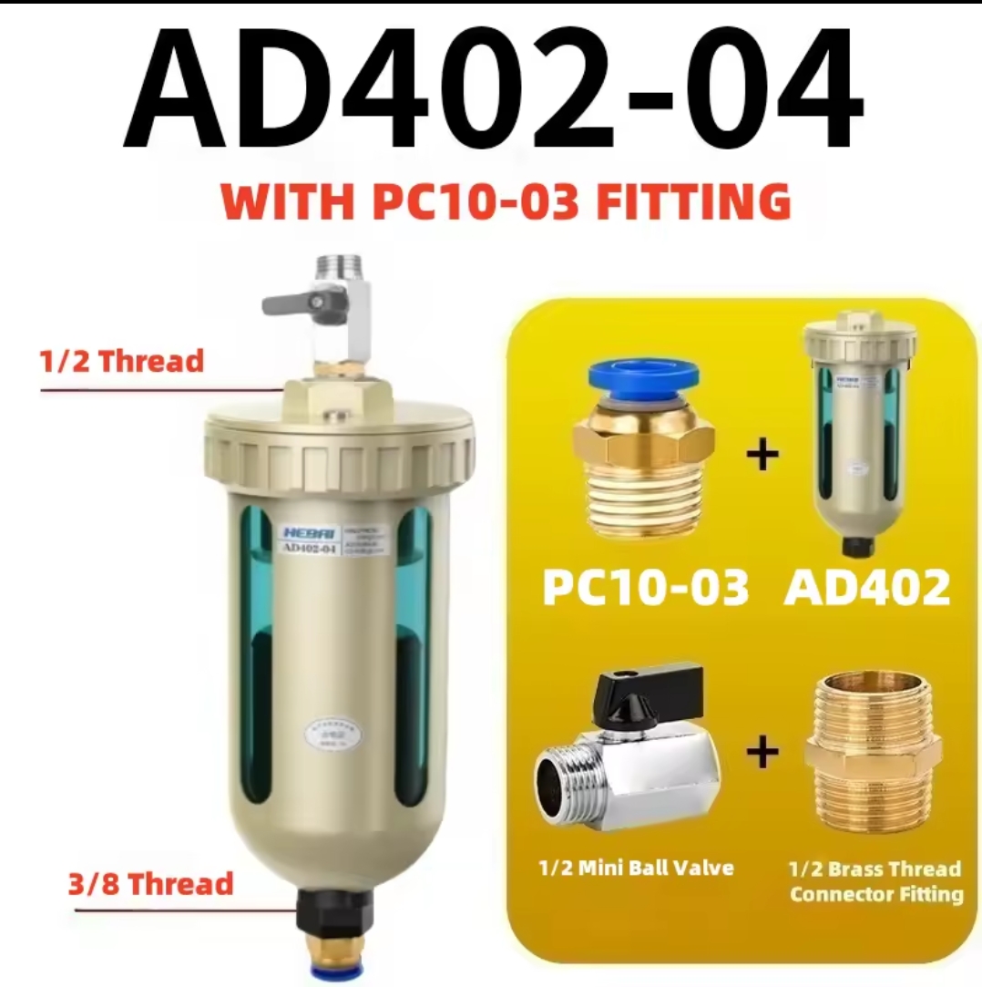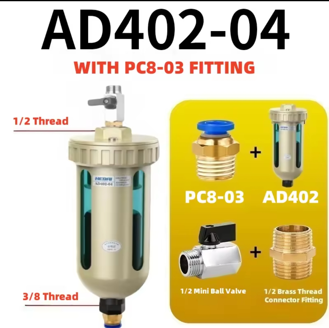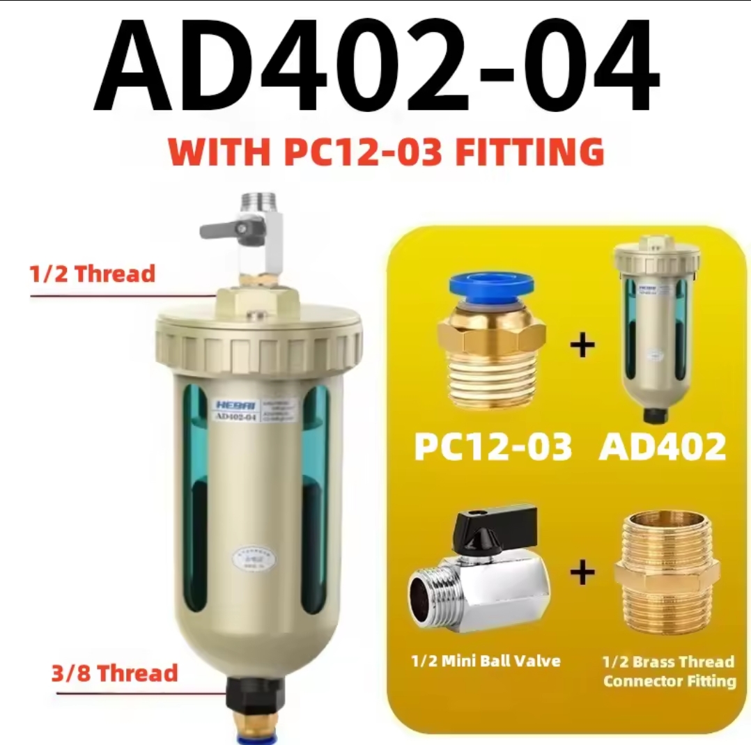 HEBAI AD402-04 ניקוז אוטומטי עם חיבור מעבד מקור אוויר פנאומטי מפרידי שמן מים מסנני דיוק ולב ניקוז