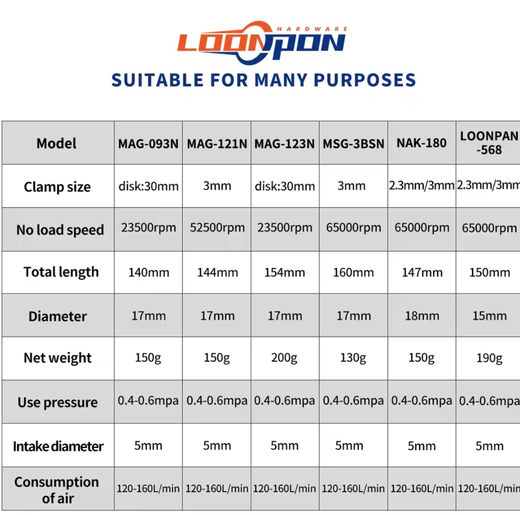 / Loonpon Die Grinder Air Tool Air Grinder Set כלי פנאומטיים מכונת חיתוך, שחזור ופוליש מרובת תכליתיות