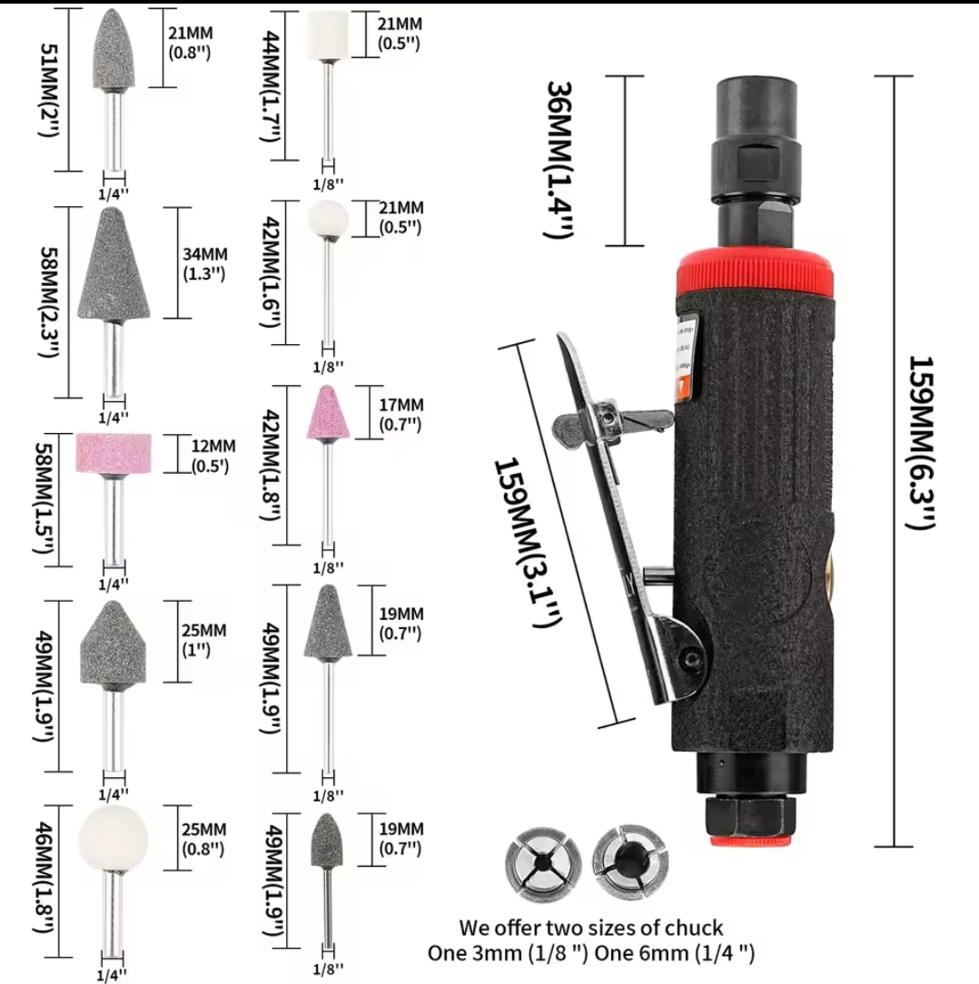 NuoDunco 1/4" כלי פנאומטי מיני מטחנת אוויר 6 מ״מ/3 מ״מ מקצועית לחיתוך ולשיפור עם ראש טחינה וצ'אק
