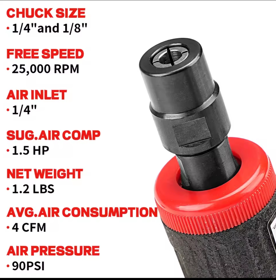 / NuoDunco 1/4" כלי פנאומטי מיני מטחנת אוויר 6 מ״מ/3 מ״מ מקצועית לחיתוך ולשיפור עם ראש טחינה וצ'אק