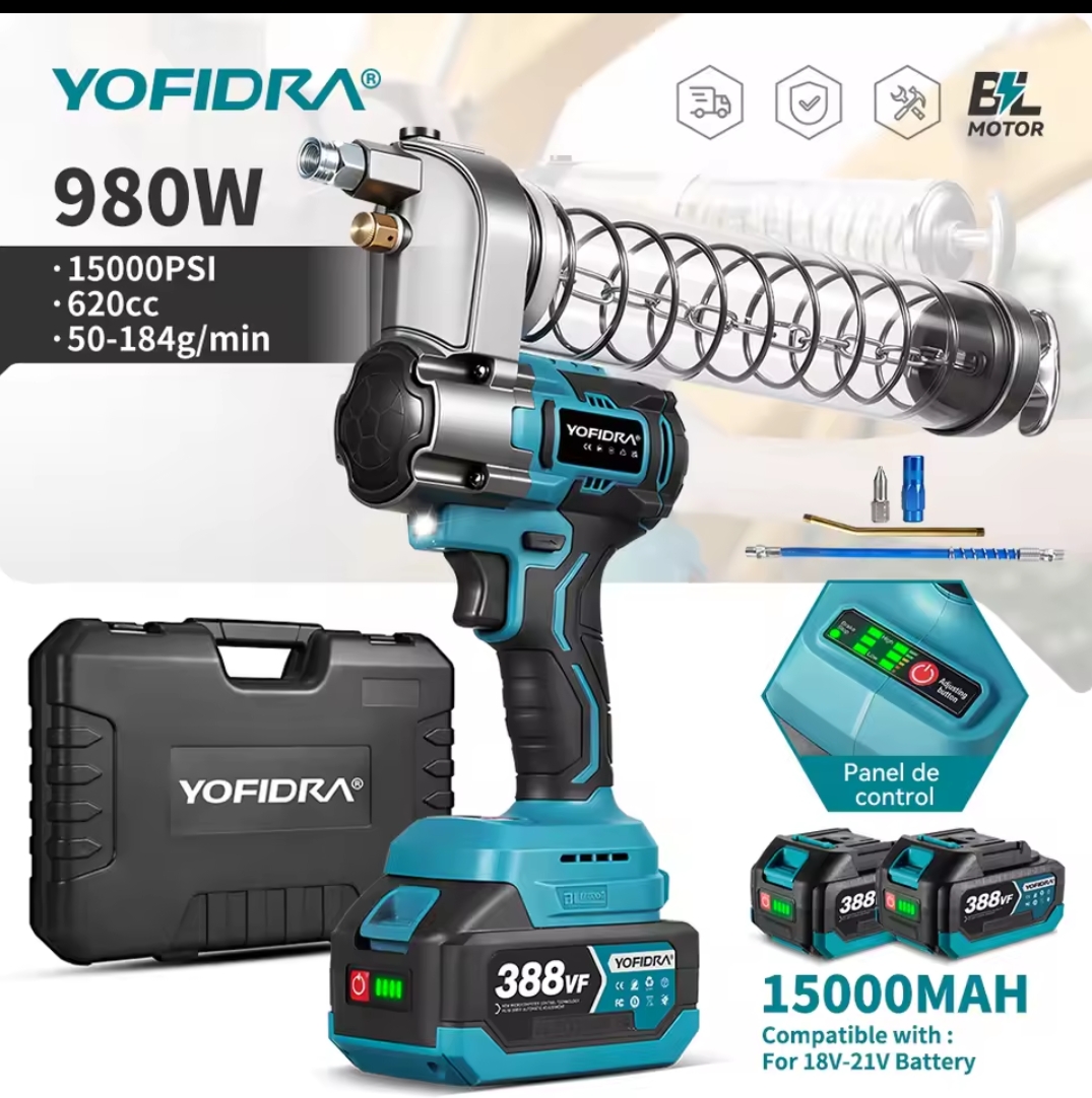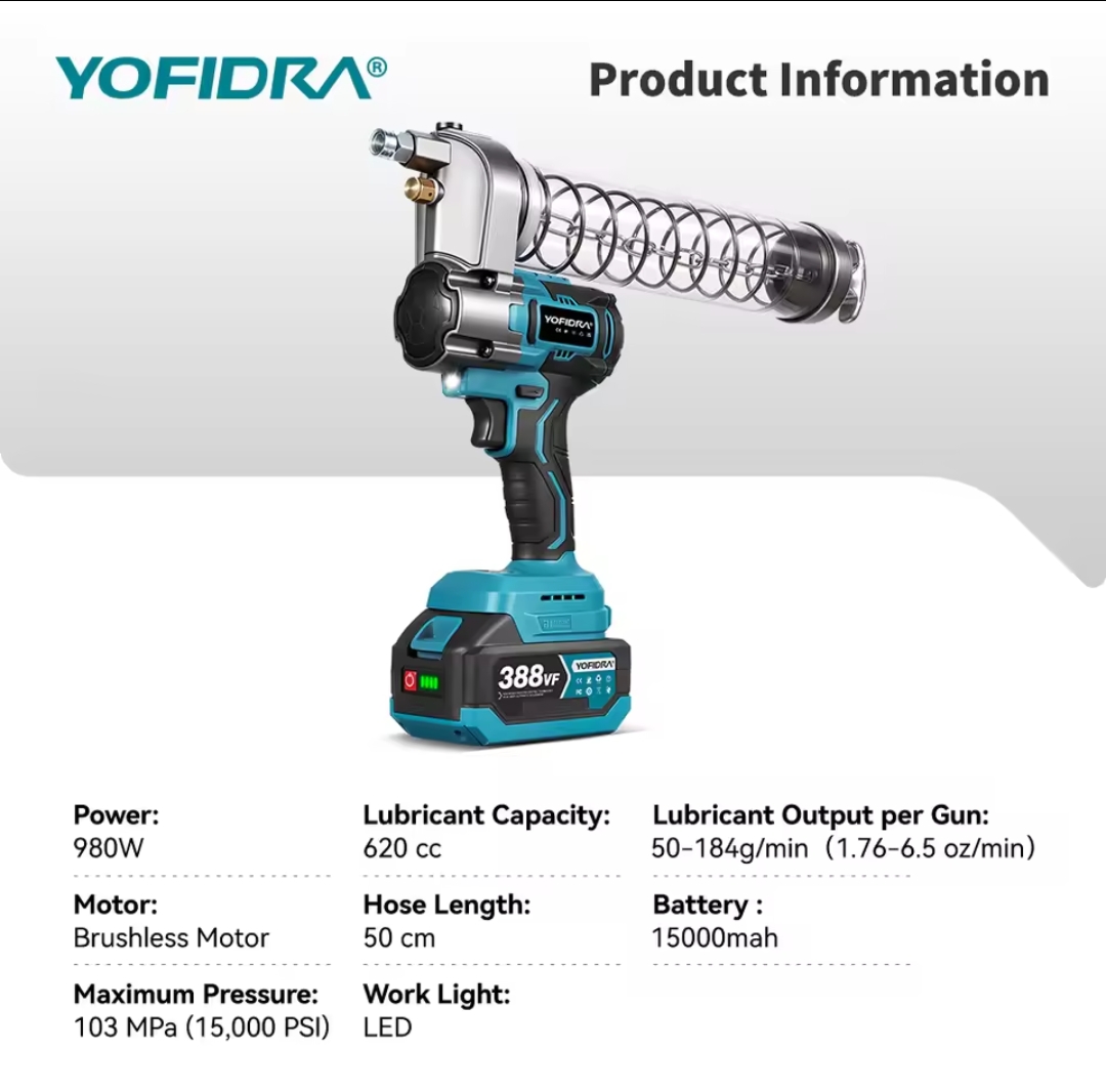 YOFIDRA Brushless 103Mpa מקלדת חשמלית 15000PSI מזרק שמן מכונת שומן כלי עבודה עבור סוללת Makita 18V Pin