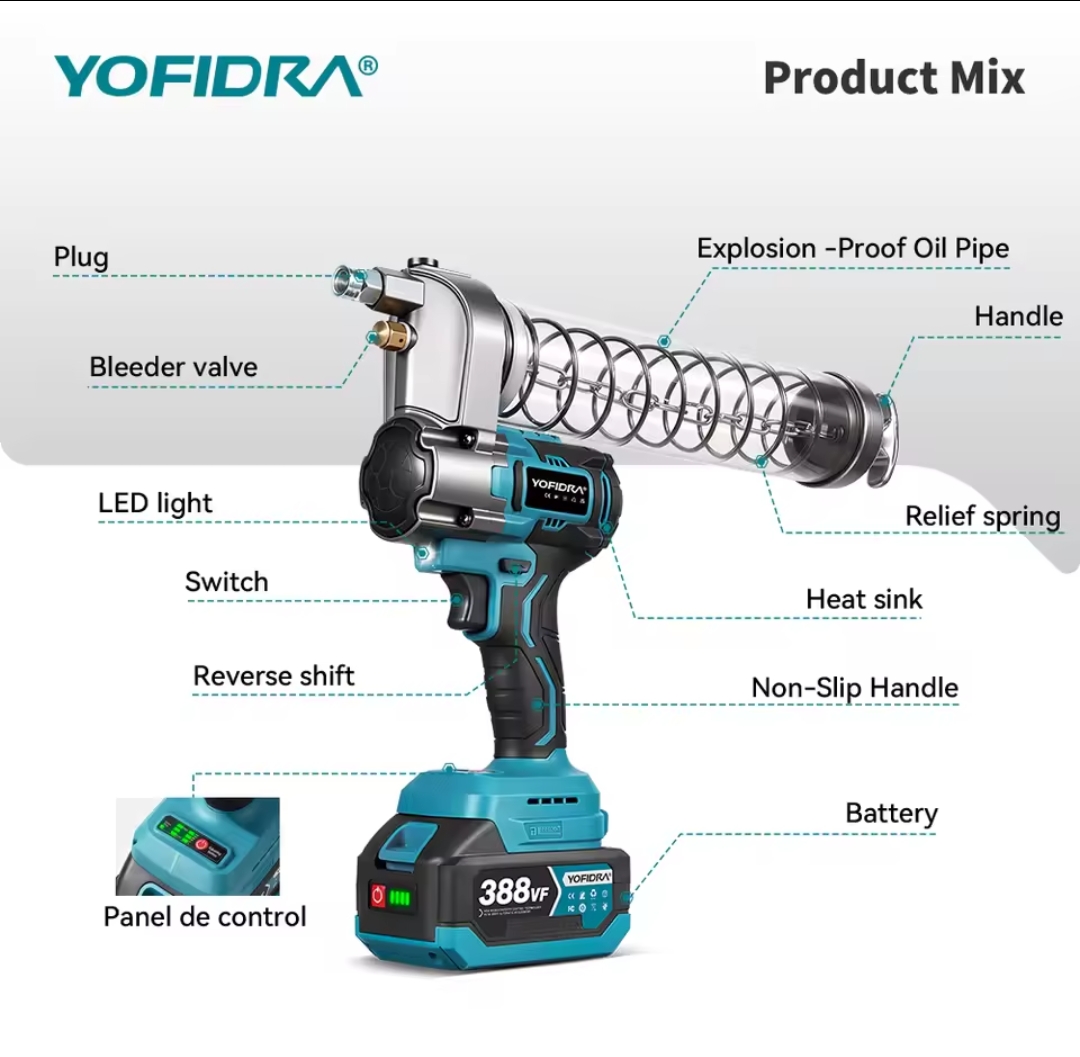 / YOFIDRA Brushless 103Mpa מקלדת חשמלית 15000PSI מזרק שמן מכונת שומן כלי עבודה עבור סוללת Makita 18V Pin